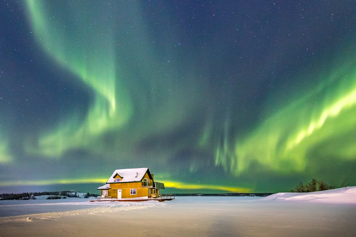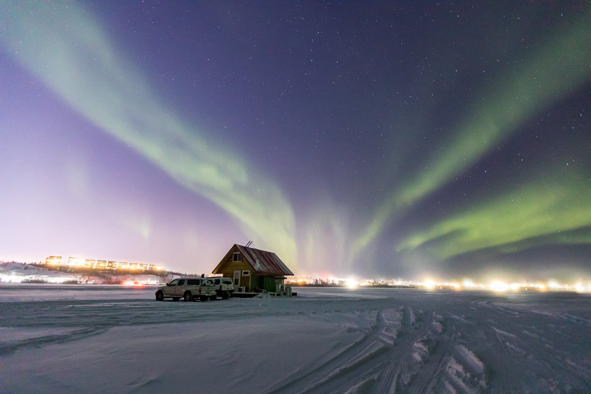 2×3, Aurora Borealis, Boat house, Canada, Northern lights, Northwest Territory, Snow, Winter, Yellowknife