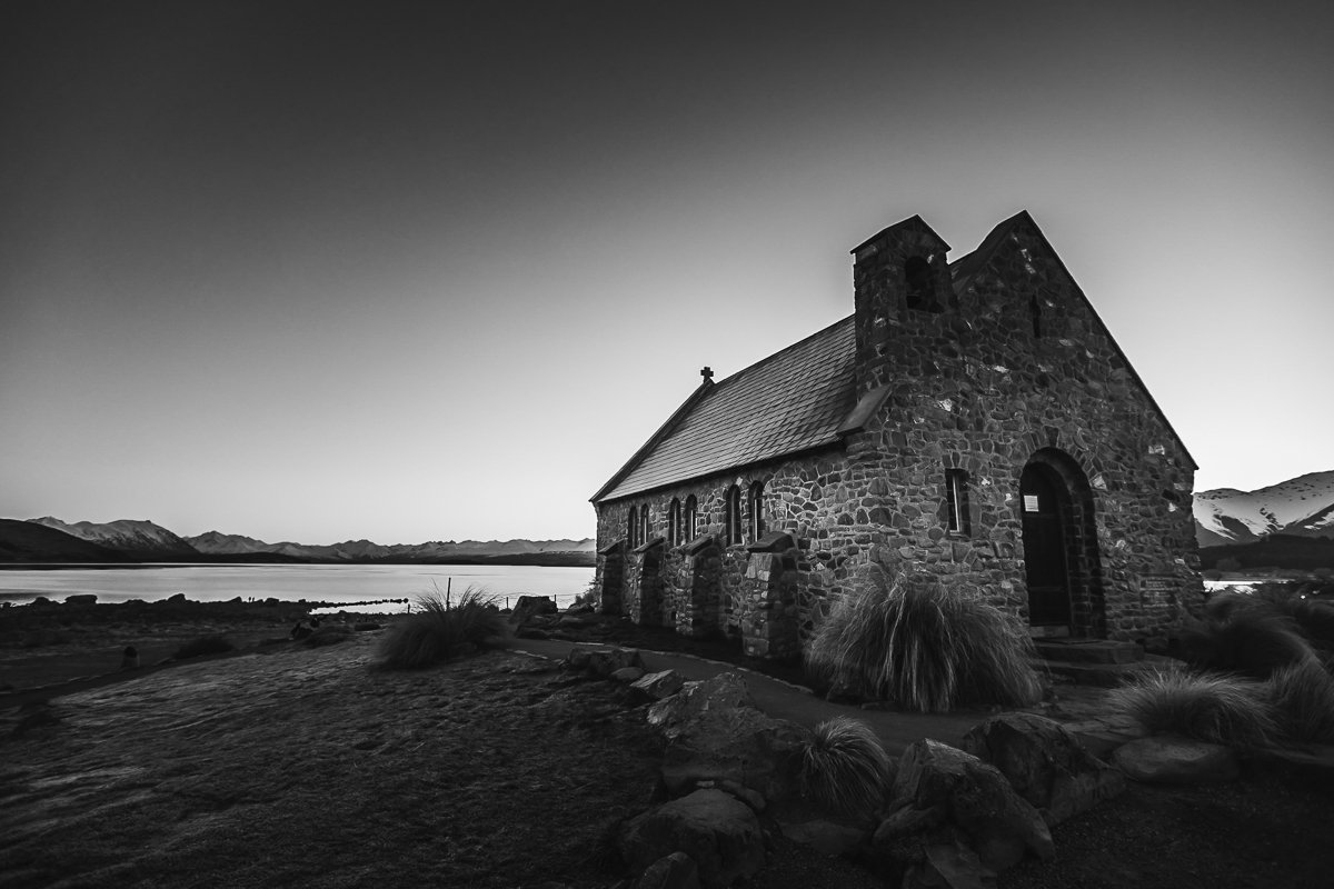 Black and White, New Zealand, Snow, church of the good shepherd, queenstown Winter, south island