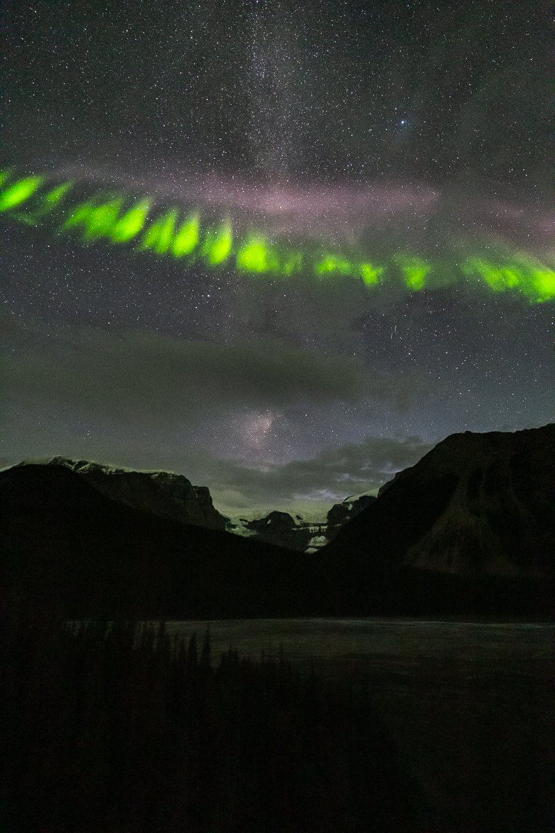 2×3, Alberta, Astrophotography, Aurora Borealis, Banff national park, Canada, Canadian Rockies, Icefield Parkway, Night, Nothern light, Stars