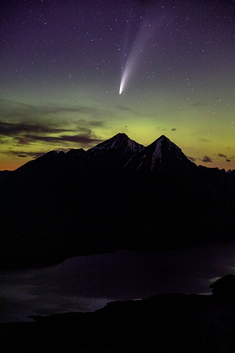 2×3, Alberta, Astrophotography, Aurora Borealis, Banff national park, Canada, Canadian Rockies, Comet Neowise, Kananaskis Country, Lake, Landscape, Mountain, Night photography, Northern Light, Spary Lake, Summer, Tent Ridge