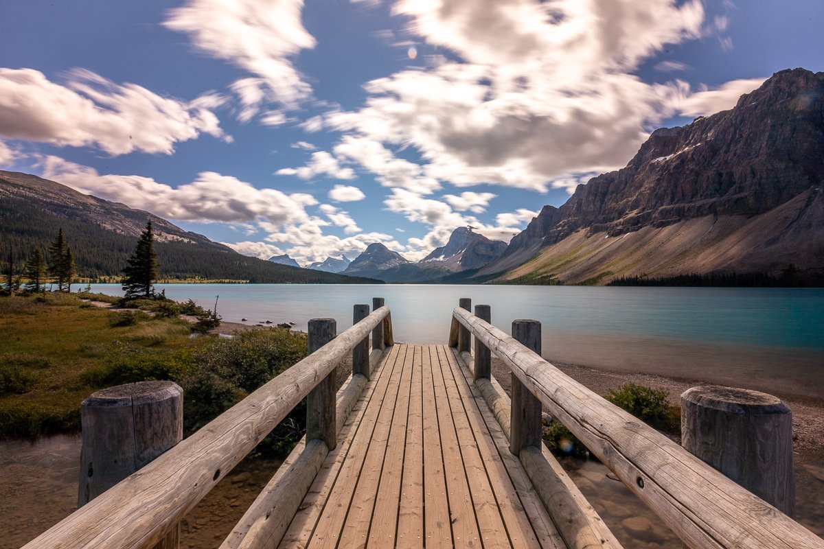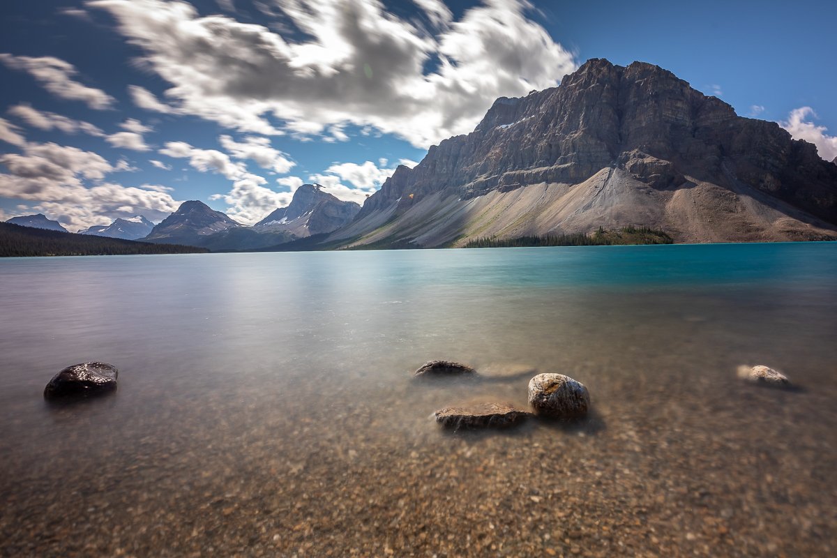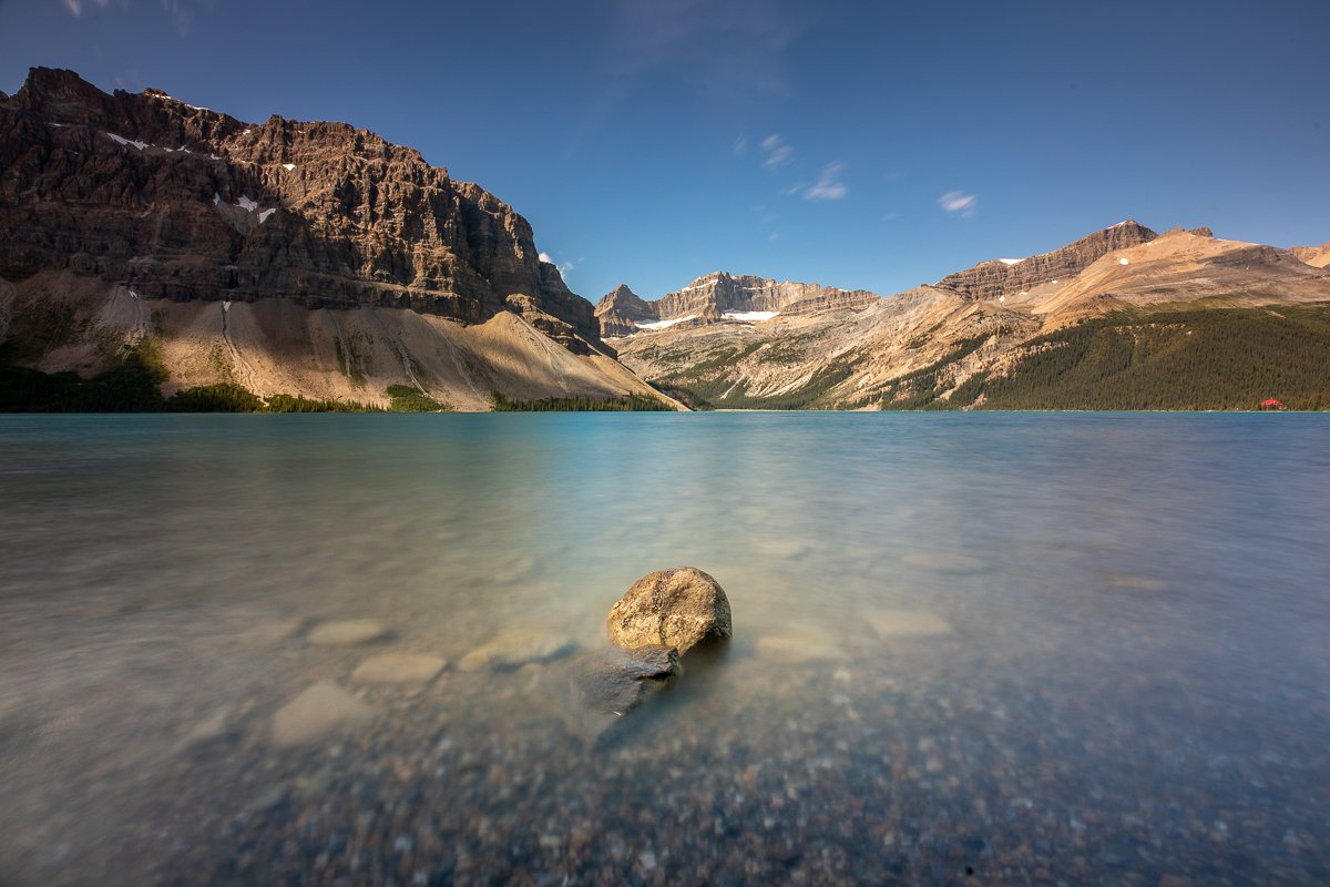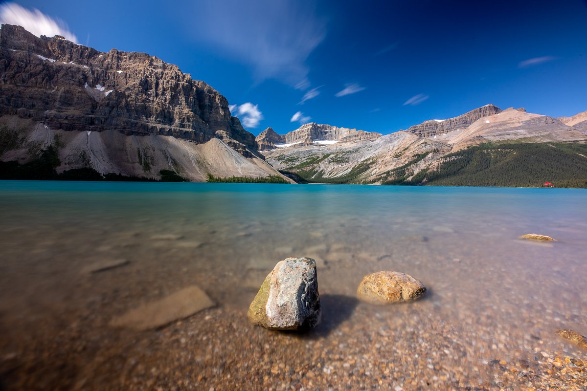2×3, Alberta, Blue sky, Bow Lake, Canada, Canadian Rockies, Lake, Landscape, Mountains, Snow, Summer, blue bird