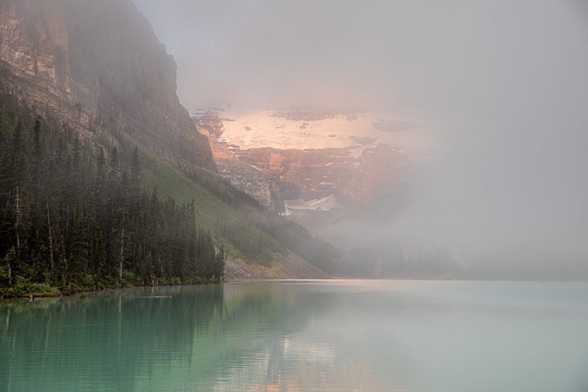 2×3, Alberta, Canada, Canadian Rockies, Foggy, Lake, Lake Louise, Landscape, Mountain, Sunrise