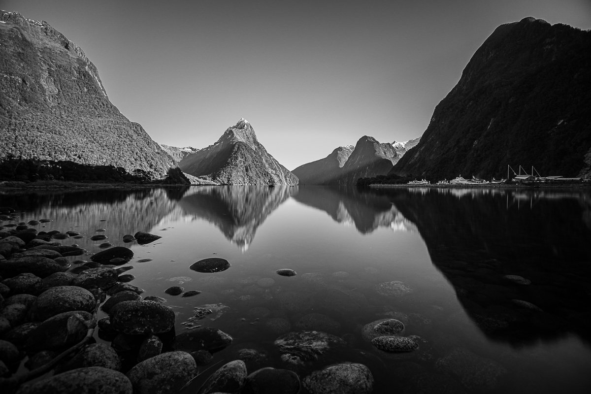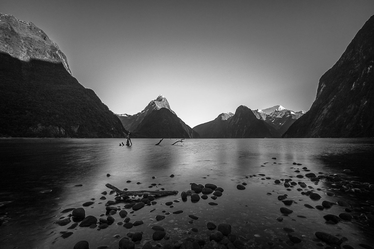 16×7, Black and White, New Zealand, Snow, Winter, milford Sound, south island