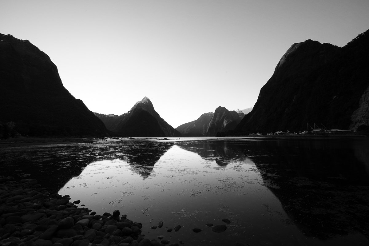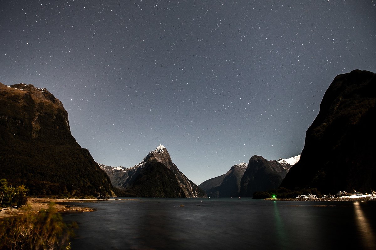 16×7, Astrophotography, Black and White, New Zealand, Snow, Winter, milford Sound, south island
