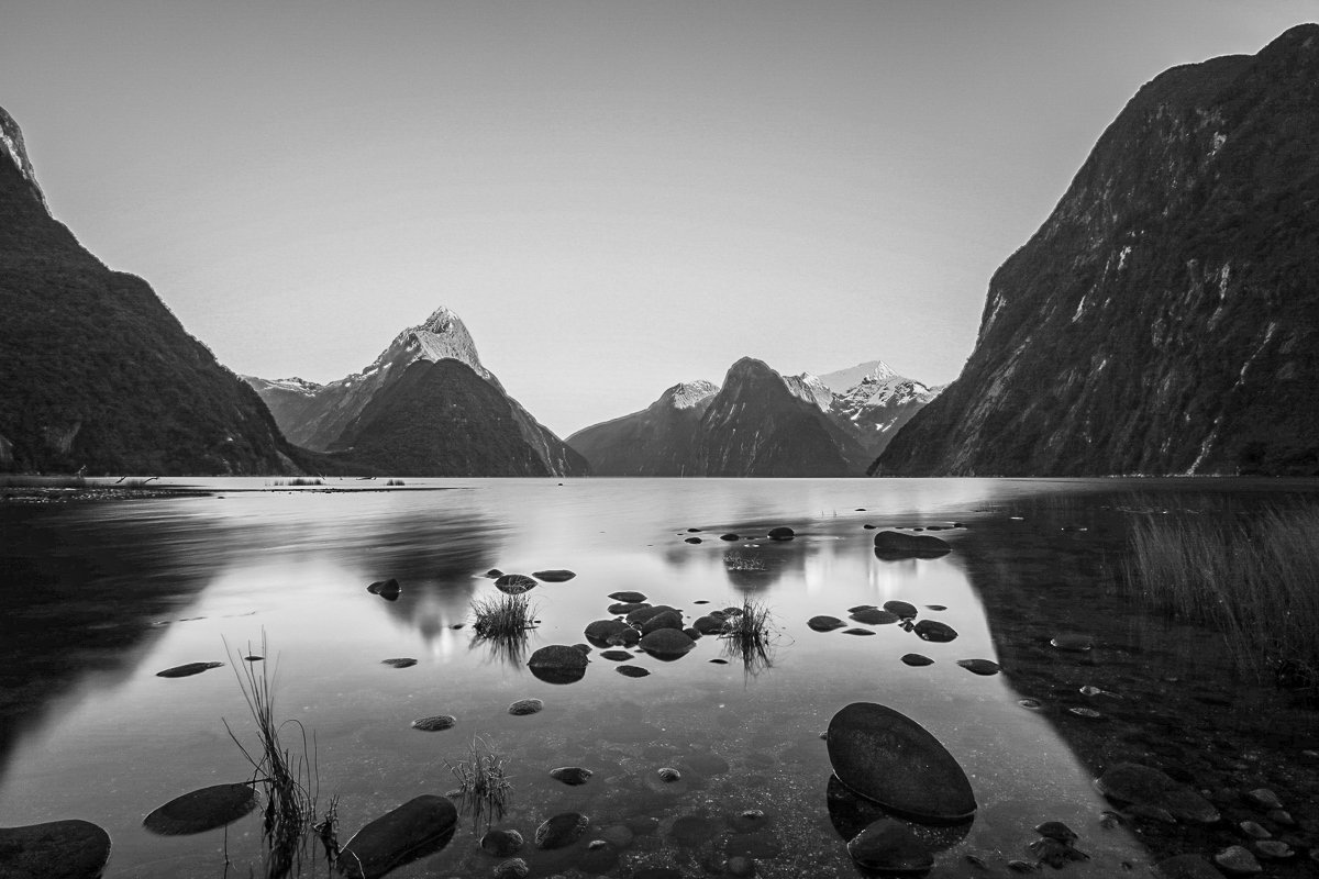2017, 2×3, Black and White, New Zealand, Snow, Winter, milford Sound, south island