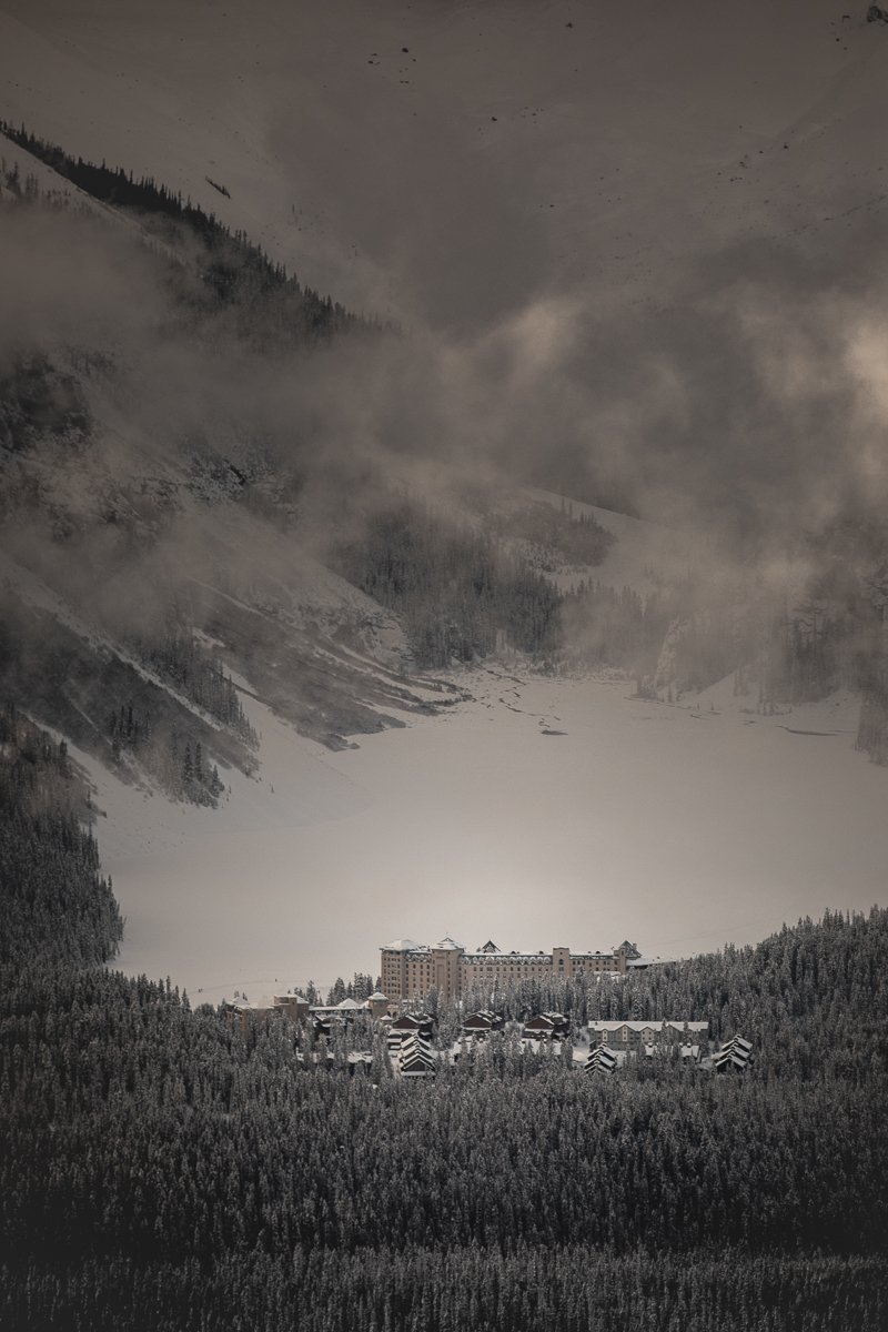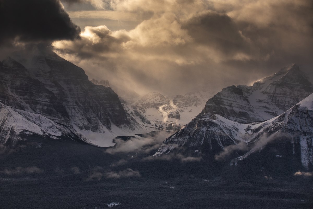 2×3, Alberta, Black and White, Canada, Canadian Rockies, Lake Louise, Landscape, Mountains, Snow, Sunset, Winter