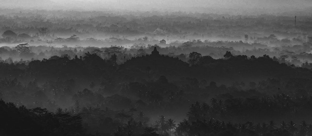 16×7, Asia, Black and White, Borobudur, Central Java, Gunung Merapi, Indonesia, Phuntuk Sembu, Sunrise, Yogyakarta, southeast asia